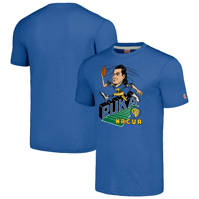 Men's Homage Puka Nacua Royal Los Angeles Rams Caricature Player Tri-Blend T-Shirt