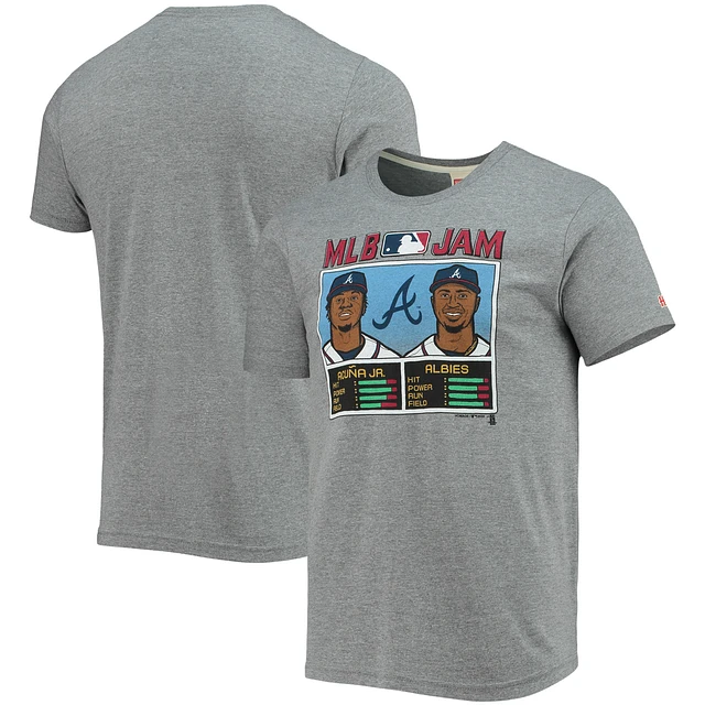 Men's Homage Ronald Acuna Jr. & Ozzie Albies Heathered Gray Atlanta Braves MLB Jam Tri-Blend T-Shirt