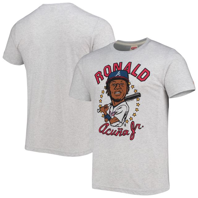 Men's Homage Ronald Acuna Jr. White Atlanta Braves Caricature Tri-Blend T-Shirt