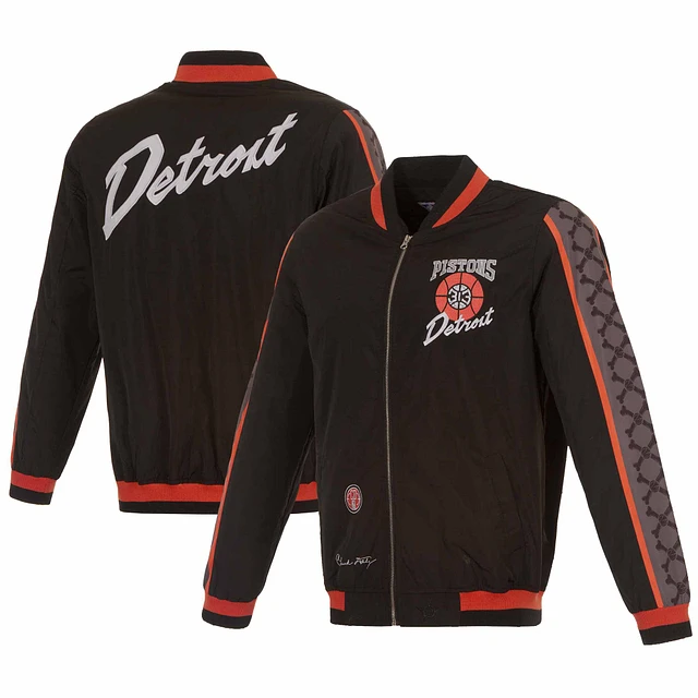 Men's JH Design Black Detroit Pistons 2023/24 City Edition Nylon Full-Zip Bomber Jacket