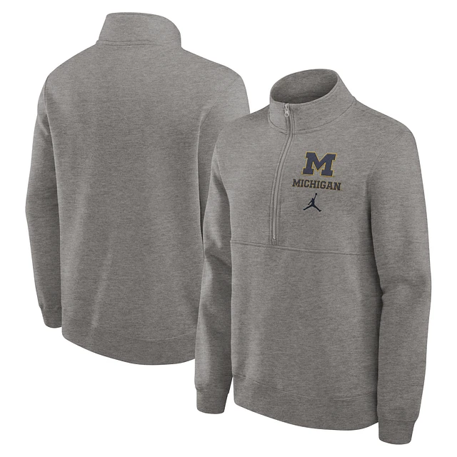 Men's Jordan Brand Heather Gray Michigan Wolverines Primetime Club Half-Zip Sweatshirt