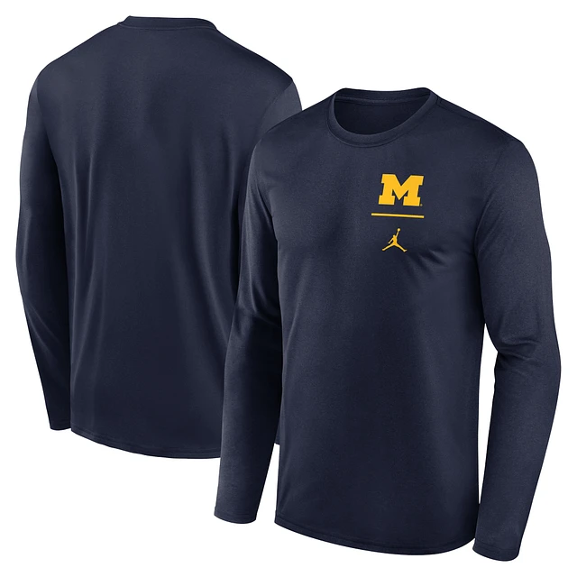 Men's Jordan Brand Navy Michigan Wolverines Primary Stack Legend Long Sleeve T-Shirt