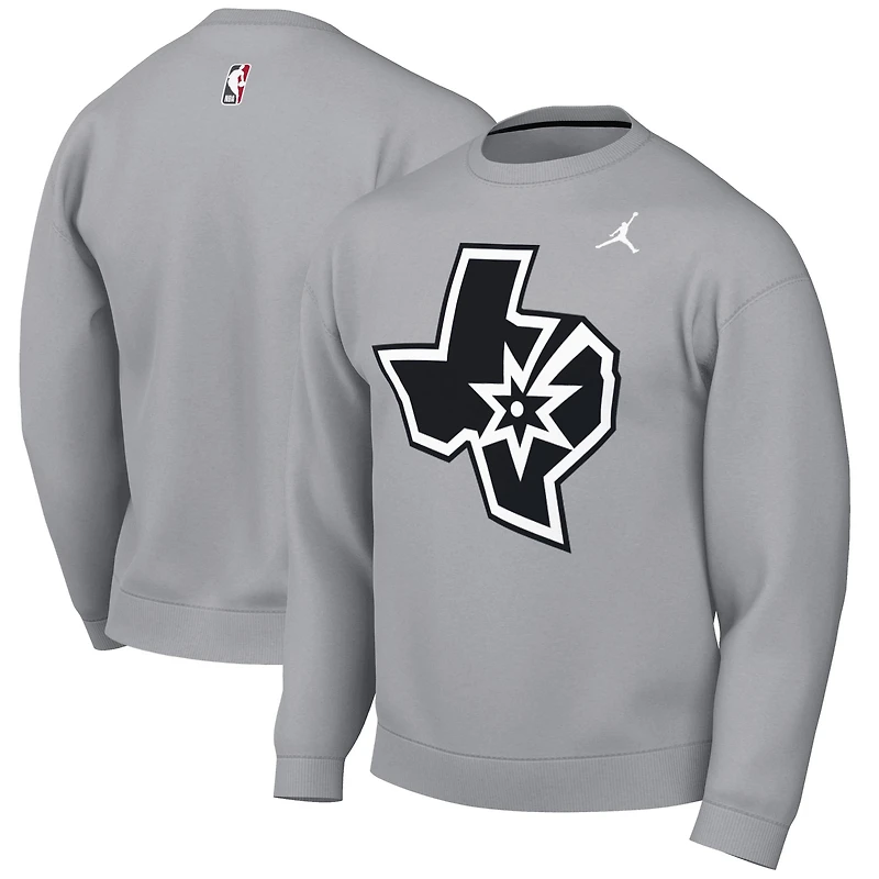 Show your unwavering support for the San Antonio Spurs with this stylish and comfortable Statement Edition Crew Sweatshirt. Featuring bold screen-printed graphics, this Jordan Brand sweatshirt proudly displays the San Antonio Spurs team colors and logo. The midweight feel provides warmth without being bulky, making it perfect for game days or everyday wear. Rib-knit cuffs and hem ensure a snug and comfortable fit, while the high-quality construction guarantees durability. Whether you're cheering from the stands or watching from home, this sweatshirt is the perfect way to represent your favorite NBA team.
