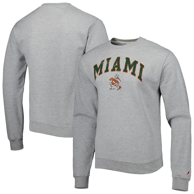 Men's League Collegiate Wear Gray Miami Hurricanes 1965 Arch Essential Lightweight Pullover Sweatshirt