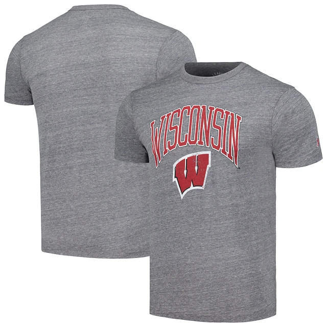 Men's League Collegiate Wear Heather Gray Wisconsin Badgers Tall Arch Victory Falls Tri-Blend T-Shirt