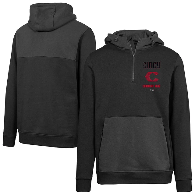 Men's Levelwear Black Cincinnati Reds City Connect Chicane Baseline Quarter-Zip Pullover Hoodie