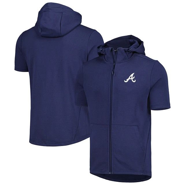 Men's Levelwear Navy Atlanta Braves Recruit Full-Zip Short Sleeve Hoodie