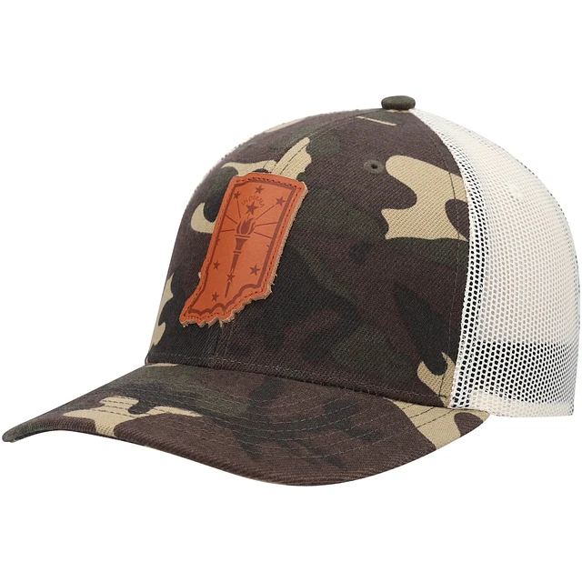 Men's Local Crowns Camo Indiana Icon Woodland State Patch Trucker Snapback Hat