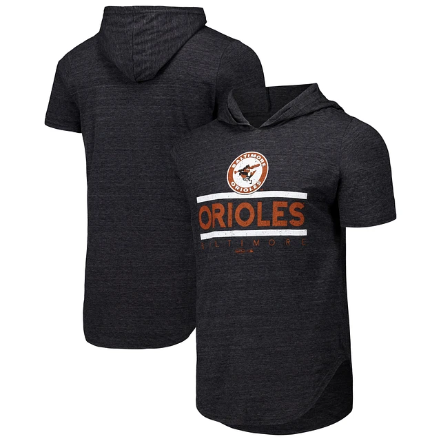 Men's Majestic Threads Black Baltimore Orioles Tri-Blend Hoodie T-Shirt