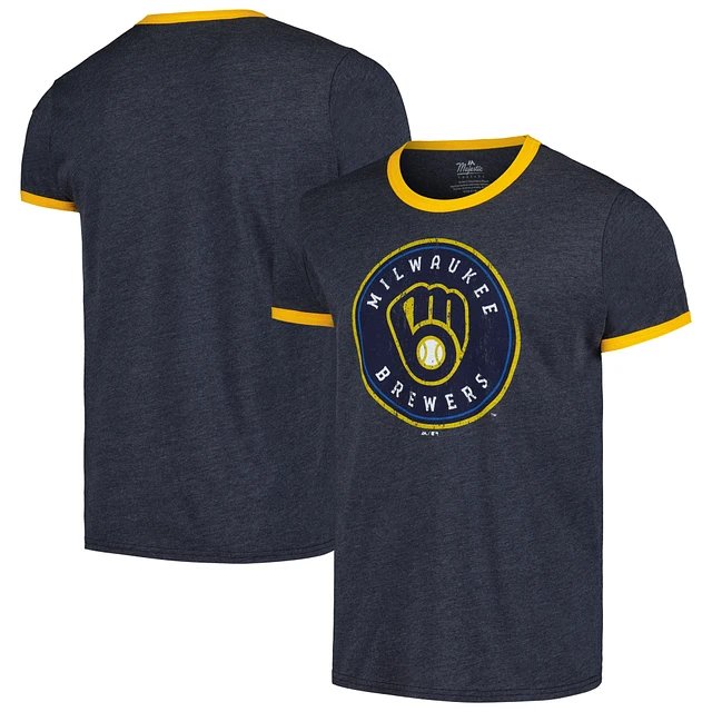 Men's Majestic Threads Navy Milwaukee Brewers Ringer Tri-Blend T-Shirt