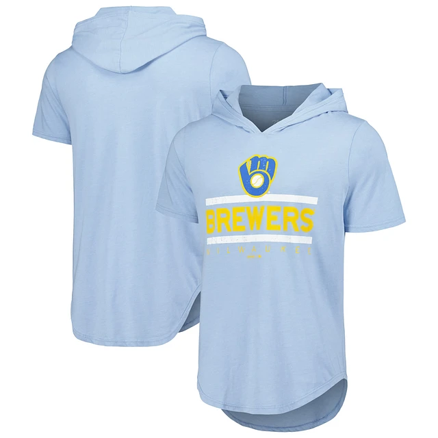 Men's Majestic Threads Powder Blue Milwaukee Brewers Tri-Blend Hoodie T-Shirt