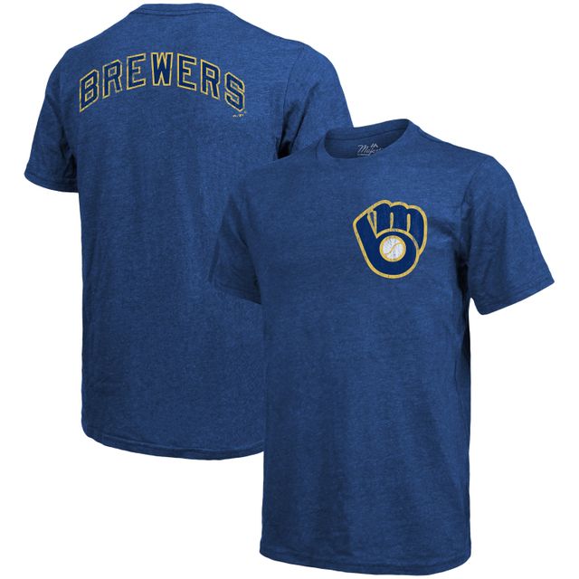 Men's Majestic Threads Royal Milwaukee Brewers Throwback Logo Tri-Blend T-Shirt
