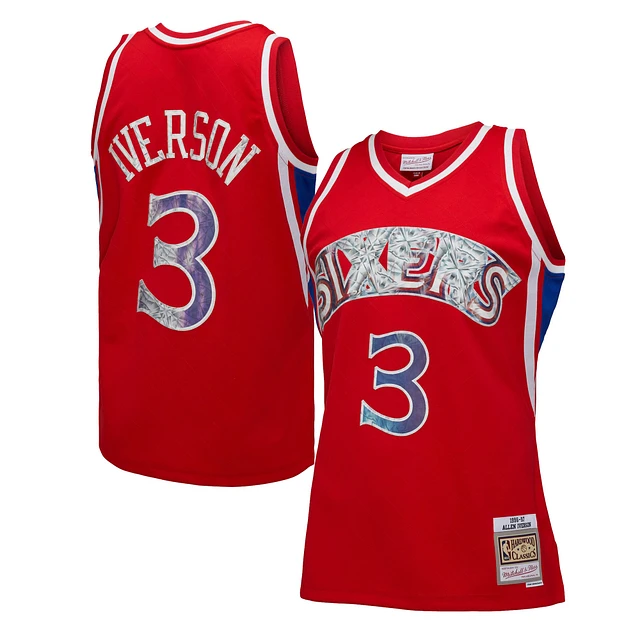 Men's Mitchell & Ness Allen Iverson Red Philadelphia 76ers 1996/97 Hardwood Classics 75th Anniversary Diamond Swingman - Jersey