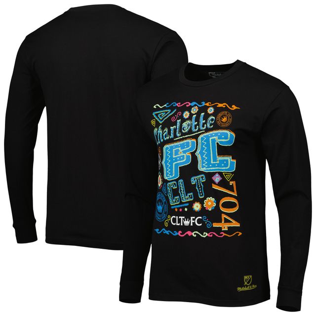Men's Mitchell & Ness Black Charlotte FC Papel Picado Long Sleeve T-Shirt