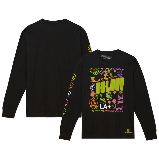 Men's Mitchell & Ness Black LA Galaxy Papel Picado Long Sleeve T-Shirt