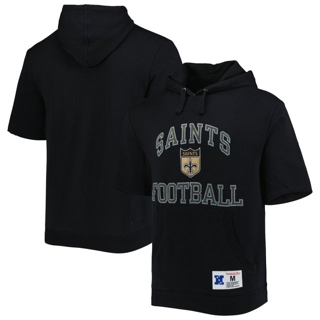Men's Mitchell & Ness Black New Orleans Saints Washed Short Sleeve Pullover Hoodie