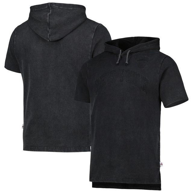 Men's Mitchell & Ness Black New York Knicks Tonal Short Sleeve Pullover Hoodie