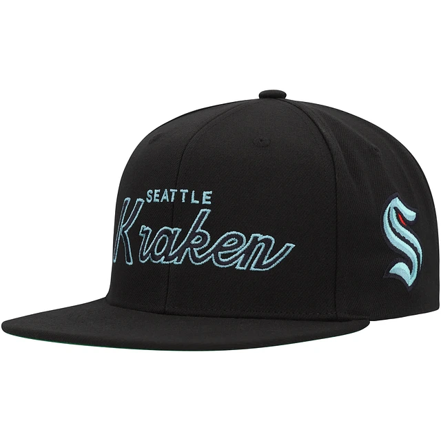 Men's Mitchell & Ness Black Seattle Kraken Core Team Script 2.0 Snapback Hat