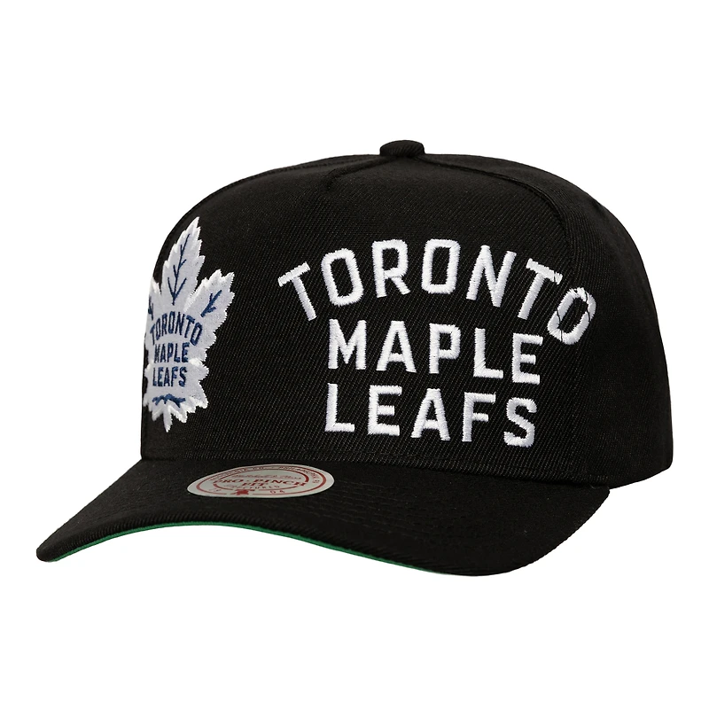 Men's Mitchell & Ness Black Toronto Maple Leafs Busted Logo Wordmark Wrap-Around Pro Pinch Adjustable Hat in Vernon, BC