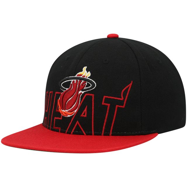Men's Mitchell & Ness Black/Red Miami Heat Hardwood Classics Low Big Face Snapback Hat