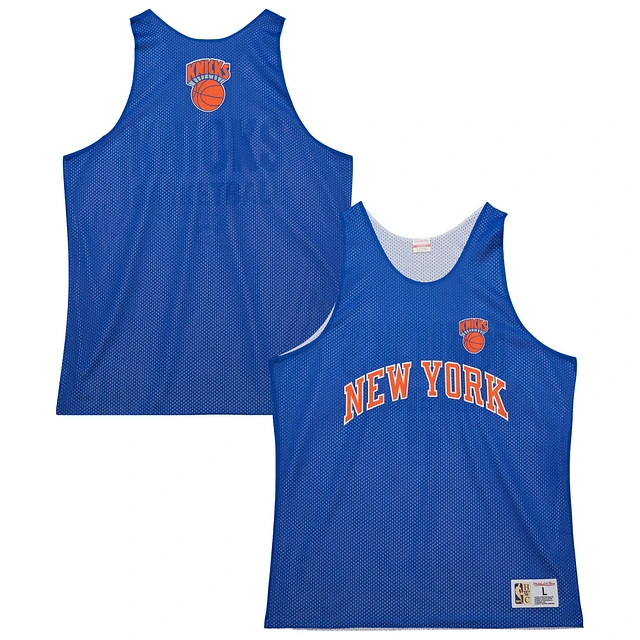 Men's Mitchell & Ness Blue/White New York Knicks Hardwood Classics Reversible Mesh Practice Jersey