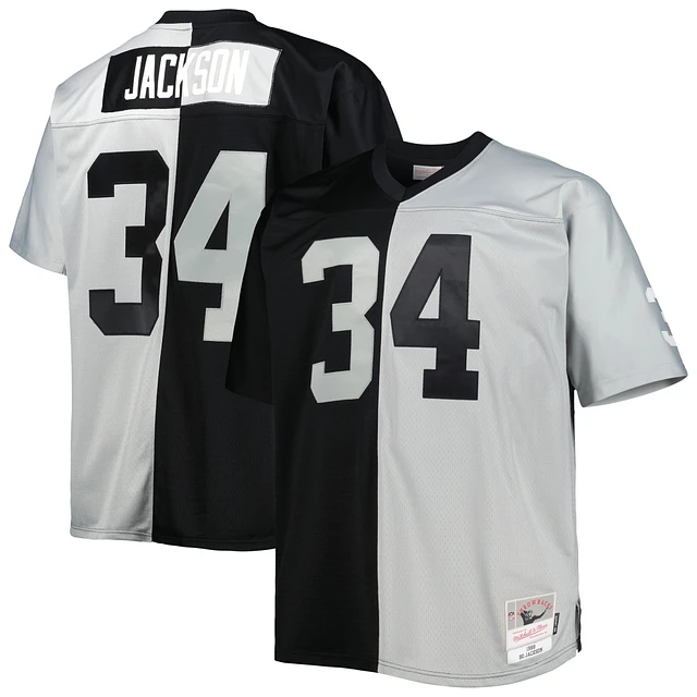 Men's Mitchell & Ness Bo Jackson Black/Silver Las Vegas Raiders Big Tall Split Legacy Retired Player Replica Jersey