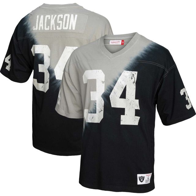 Men's Mitchell & Ness Bo Jackson Silver/Black Los Angeles Raiders Retired Player Name Number Diagonal Tie-Dye - V-Neck T-Shirt