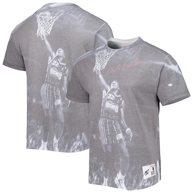 Men's Mitchell & Ness Clyde Drexler Heather Gray Houston Rockets Above The Rim T-Shirt