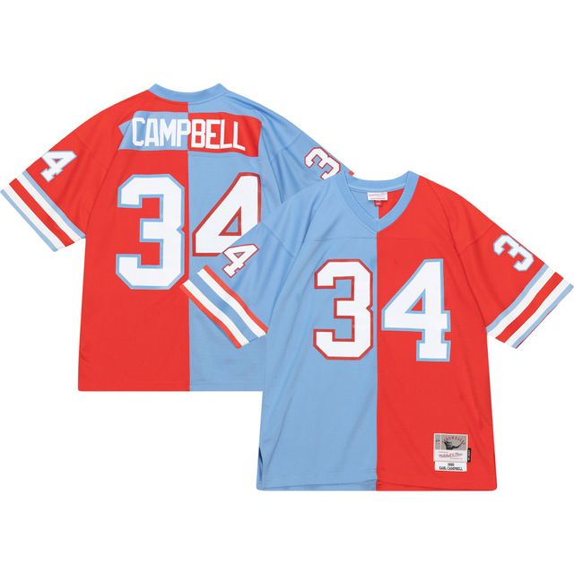 Men's Mitchell & Ness Earl Campbell Light Blue/Red Houston Oilers Big Tall Gridiron Classics Split Legacy Retired Player Replica Jersey