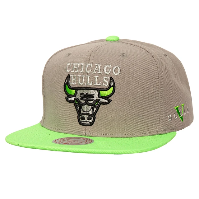 Men's Mitchell & Ness Gray/Neon Green Chicago Bulls Core V Snapback Hat