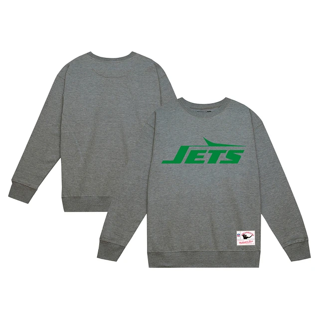 Men's Mitchell & Ness Heather Gray New York Jets Basic Fleece Pullover Sweatshirt