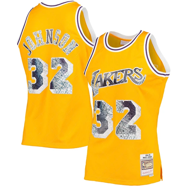 Men's Mitchell & Ness Magic Johnson Gold Los Angeles Lakers 1984/85 Hardwood Classics 75th Anniversary Diamond Swingman - Jersey