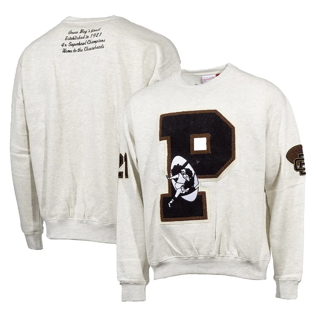 Men's Mitchell & Ness Oatmeal Green Bay Packers Varsity Oversized Pullover Sweatshirt