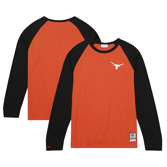 Men's Mitchell & Ness Orange Texas Longhorns Legendary Slub Raglan Long Sleeve T-Shirt