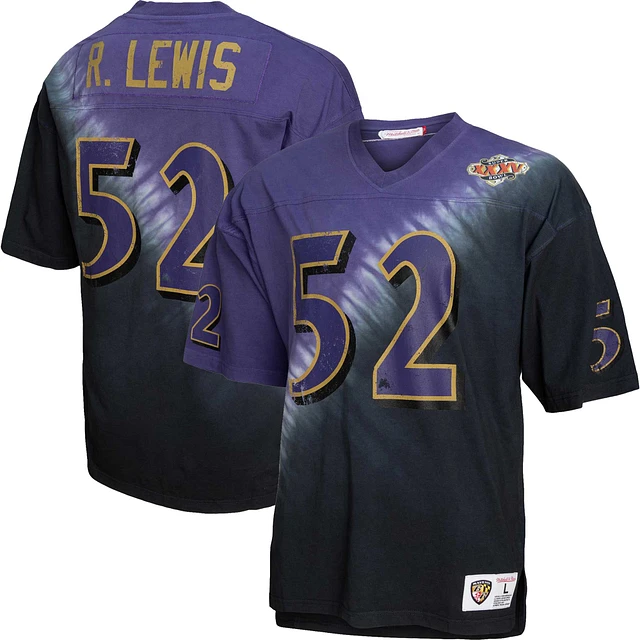 Men's Mitchell & Ness Ray Lewis Purple/Black Baltimore Ravens Retired Player Name Number Diagonal Tie-Dye - V-Neck T-Shirt
