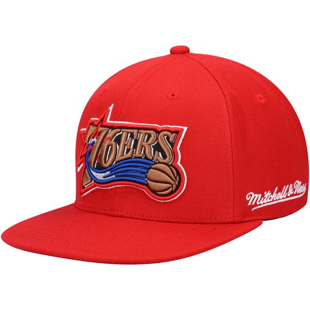 Men's Mitchell & Ness Red Philadelphia 76ers Hardwood Classics English Dropback - Snapback Hat