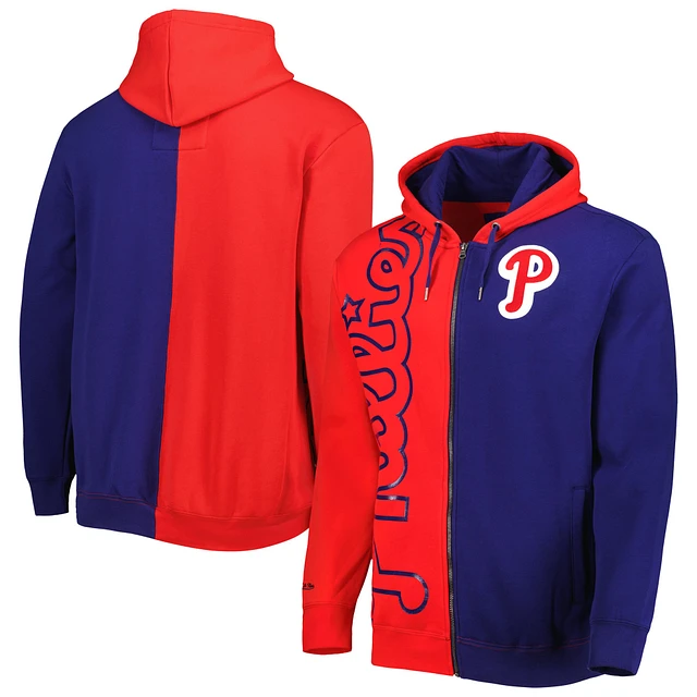 Men's Mitchell & Ness Red/Royal Philadelphia Phillies Fleece Full-Zip Hoodie