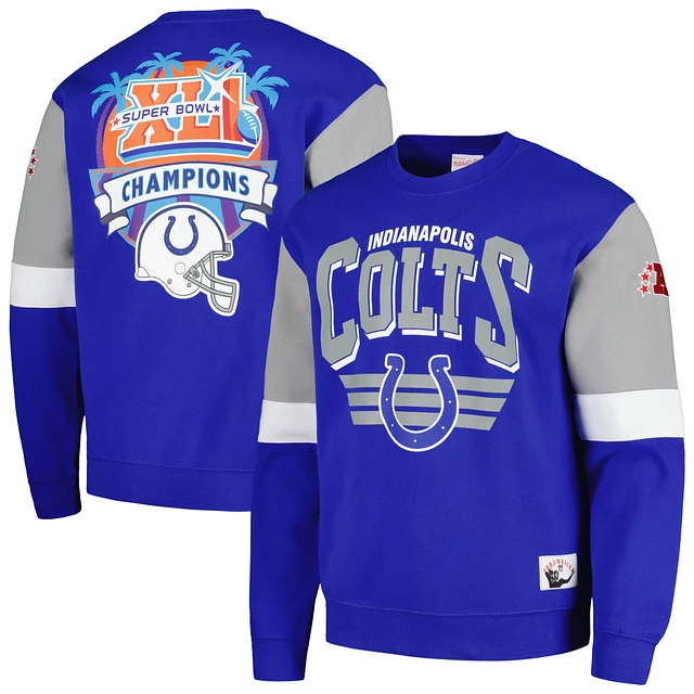 Men's Mitchell & Ness Royal Indianapolis Colts Gridiron Classics Allover 3.0 Pullover Sweatshirt