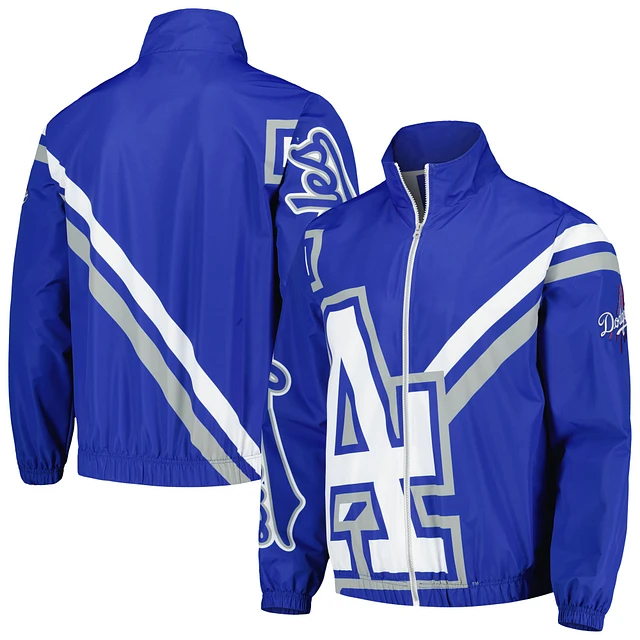 Men's Mitchell & Ness Royal Los Angeles Dodgers Exploded Logo Warm Up Full-Zip Jacket