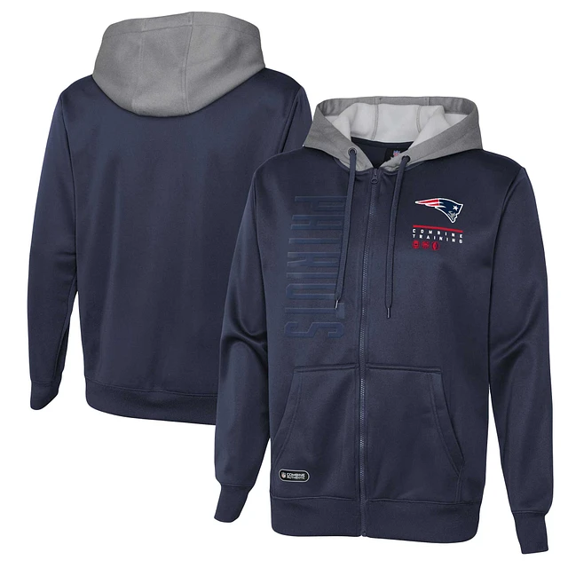 Men's Navy New England Patriots Combine Authentic Field Play Full-Zip Hoodie Sweatshirt
