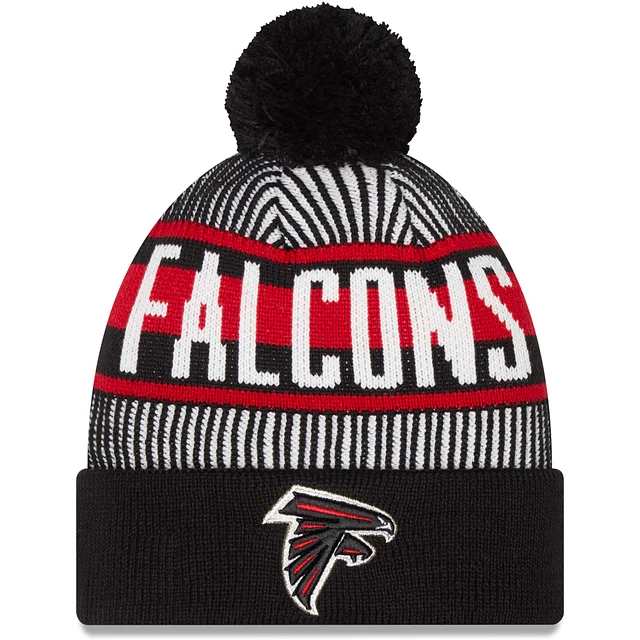 Men's New Era Black Atlanta Falcons Striped Cuffed Knit Hat with Pom
