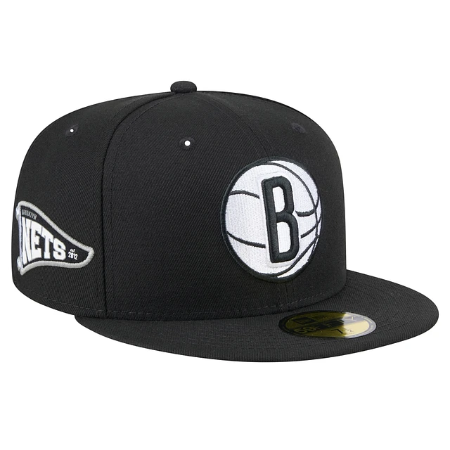 Men's New Era Black Brooklyn Nets Throwback Pennant 59FIFTY Fitted Hat