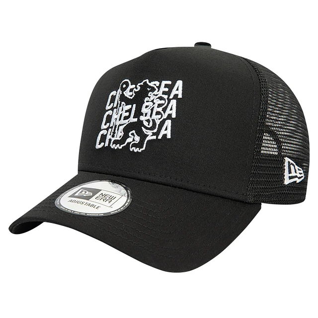 Men's New Era Black Chelsea Wordmark Overlay A-Frame Trucker 9FORTY Adjustable Hat