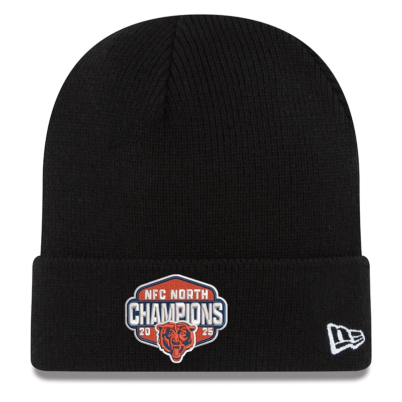 Men's New Era Black Chicago Bears 2025 NFC North Division Champions Cuffed Knit Hat