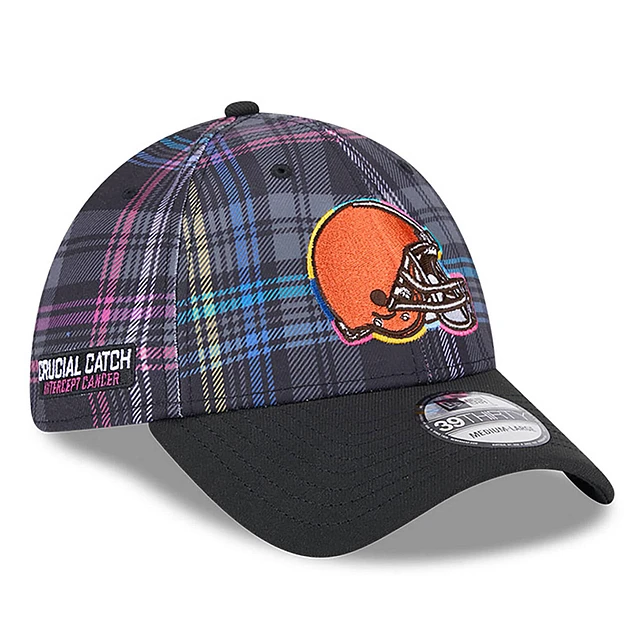 Men's New Era Black Cleveland Browns 2024 NFL Crucial Catch Plaid 39THIRTY Flex Hat