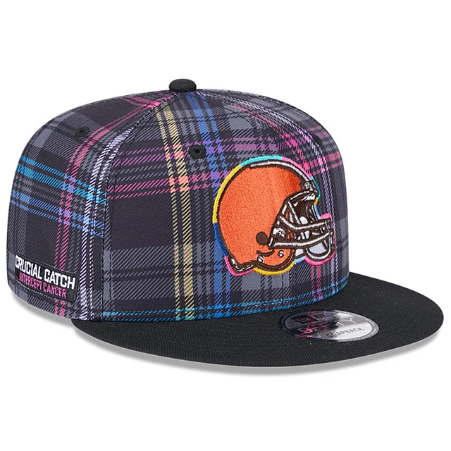 Men's New Era Black Cleveland Browns 2024 NFL Crucial Catch Plaid 9FIFTY Snapback Hat