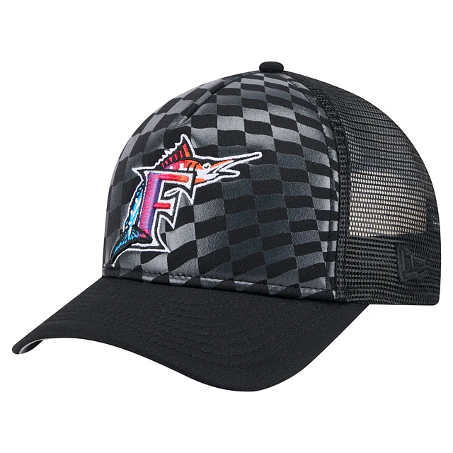 Men's New Era Black Florida Marlins Cooperstown Collection Gradient 9FORTY A-Frame M-Crown Trucker Adjustable Hat