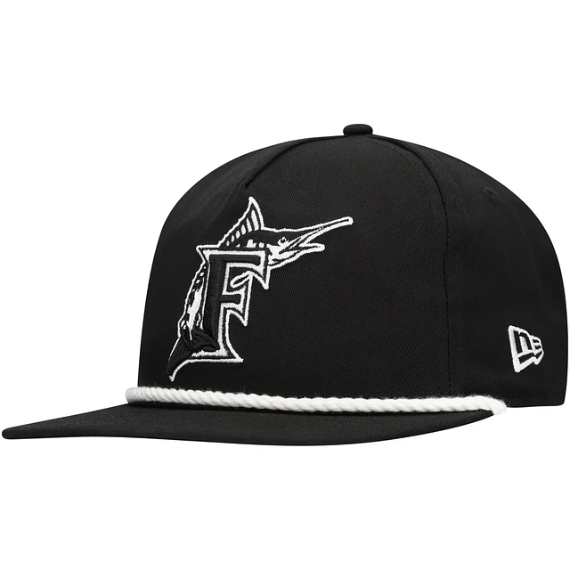 Men's New Era Black Florida Marlins Golfer Snapback Hat