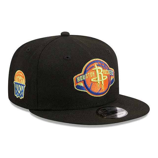 Men's New Era Black Houston Rockets Neon Pop 9FIFTY Snapback Hat