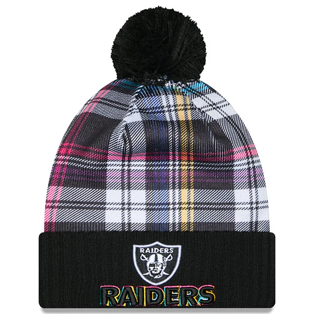 Men's New Era Black Las Vegas Raiders 2024 NFL Crucial Catch Cuffed Knit Hat With Pom